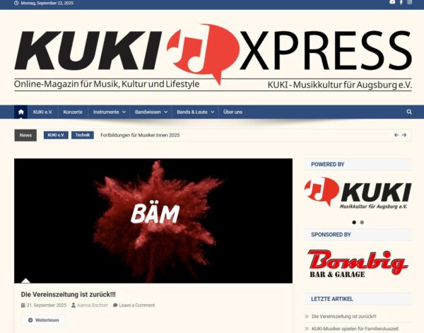 Seit gestern ist der KUKI EXPRESS online – die Vereinszeitung für KUKI Musikkultur für Augsburg e. V.! Früher gab es sie unter dem Namen Cookie Express in Papierform. Jetzt haben wir die Mitgliederzeitung ins Digitale überführt: ein großes Projekt, in dem auch ich – zusammen mit vielen anderen fleißigen Menschen – meine Kompetenzen einbringen konnte.…